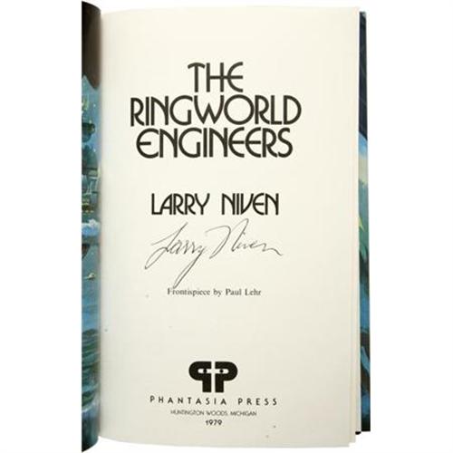 <B>Larry Niven: Four Signed Ringworld Books.</B></I> Includes the following: <BR><B><I>The Ringworld Throne.</B></I></B></I> (New York: Del Rey, 1996), first edition, 424 pages, dark blue cloth over blue boards, 8vo, dust jacket. Condition (book/ dj): as new/ as new. <BR><B><I>The Ringworld Engineers.</B></I></B></I> (New York: Holt, Rinehart and Winston, 1980), second printing, 357 pages, black cloth over gray boards, 8vo, dust jacket. Condition (book/ dj): as new/ fine. <BR><B><I>Ringworld's Children.</B></I></B></I> (New York: Tor, 2004), first edition, 284 pages, blue boards, 8vo, dust jacket. Condition (book/ dj): as new/ as new. <BR><B><I>The Ringworld Engineers.</B></I></B></I> (Huntington Woods: Phantasia Press, 1979), limited first edition (#206 of 500, signed twice), 355 pages, dark green boards w/ matching slipcase, 8vo, dust jacket. Condition (book/ dj): as new/ as new.<BR><BR><b>Shipping:</b> Books & Catalogs (<a target="_blank" href="http://www.heritageauctions.com/common/shipping.php">view shipping information</a>)