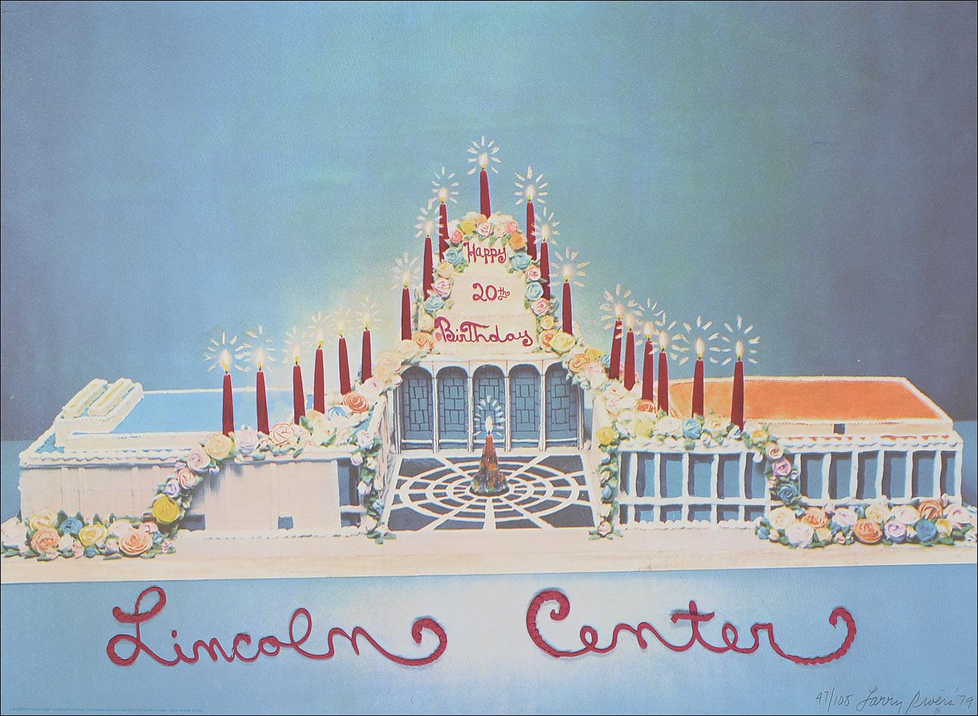 Important American artist (1923–2002) best known for his works melding abstraction with proto-Pop imagery. Color limited edition screenprint, 35.5 x 26, honoring the Lincoln Center’s 20th birthday in 1979, #47/108, signed at the bottom in pencil, “Larry Rivers ‘79.” In fine condition.