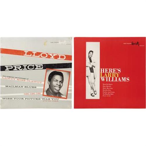 <B>Larry Williams and Lloyd Price LP Group of Two (1959).</B></I> Little Richard wasn't the only Rock and Roll legend who recorded on the Specialty label! Here's Beatles' fave Larry Williams' first album "Here's Larry Williams" (Specialty 2109) in fantastic MT 9/ MT 9 and Rock and Roll Hall of Famer Lloyd Price's only release on the label, "Lloyd Price" (Specialty 2105) in sparkling NM 8/ NM 8! Both are from 1959 and in mono.<BR><BR><b>Shipping:</b> Recordings (<a target="_blank" href="http://www.heritageauctions.com/common/shipping.php">view shipping information</a>)