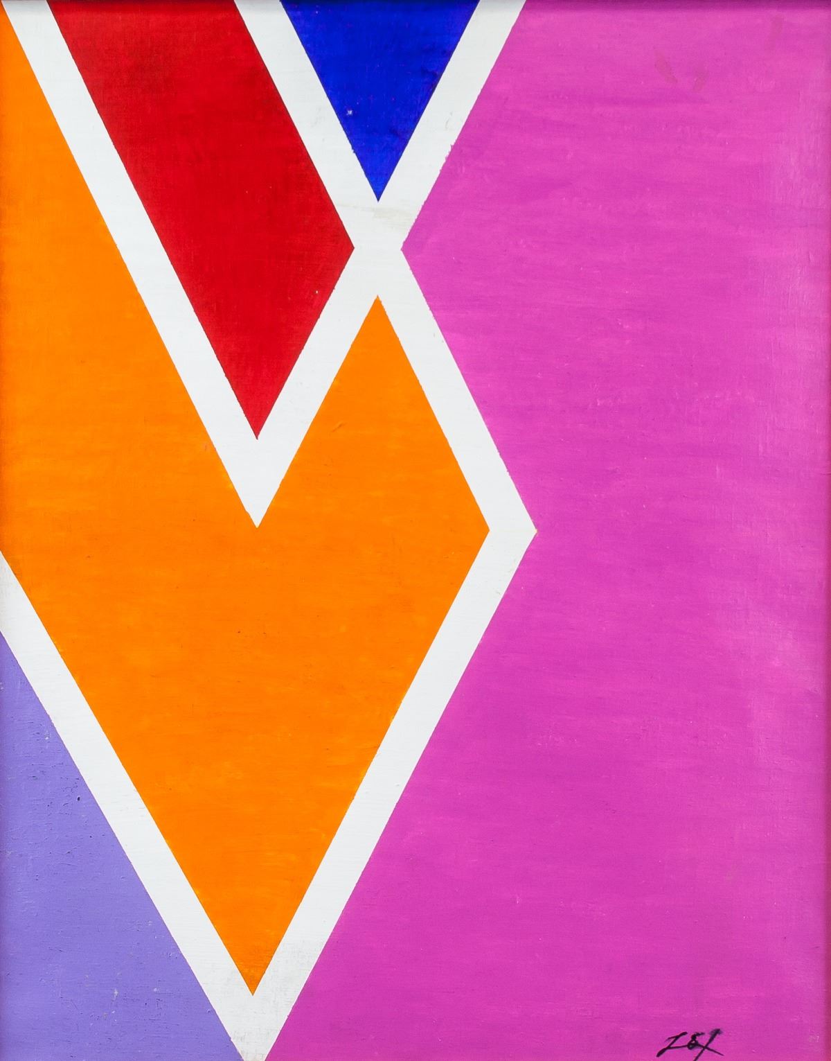 Oil on canvas, framed. Featuring an colorful abstract composition. Signed Zox on the lower right corner. Attributed to Larry Zox (1936-2006, American). 50.5 x 40 cm (20 x 15.7 inches). PROVENANCE: Southern Ontario estate