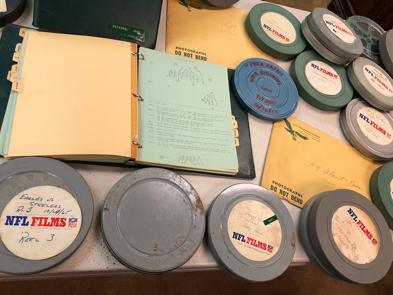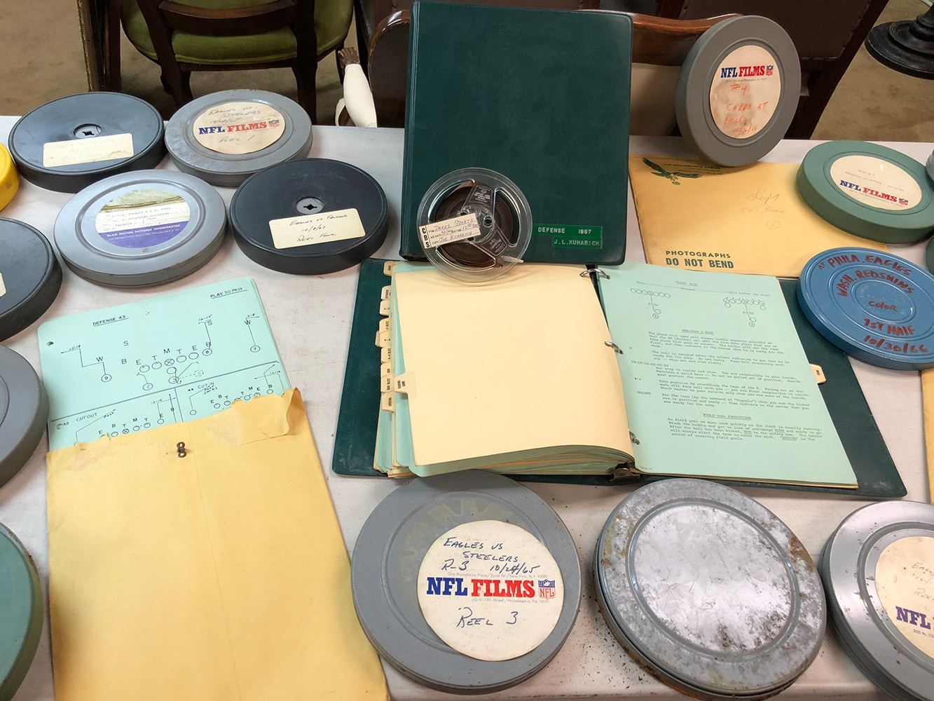 Lary Kuharich was an American football coach who was most recently the offensive coordinator of the Arena Football League's Columbus Destroyers. He was the son of former Notre Dame Fighting Irish and Philadelphia Eagles head football coach Joe Kuharich and the brother of former New Orleans Saints General Manager Bill Kuharich. This extensive football collection includes desk items straight from Lary Kuharich's desk, films, play books, a vintage Notradame gamed used blanket, etc. This is a football collection from the greats!