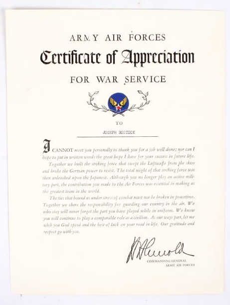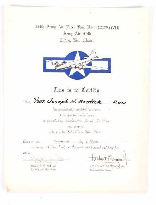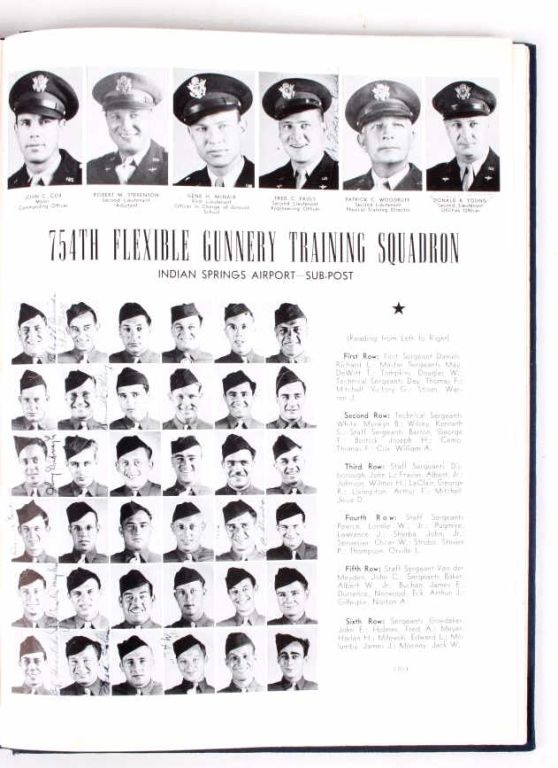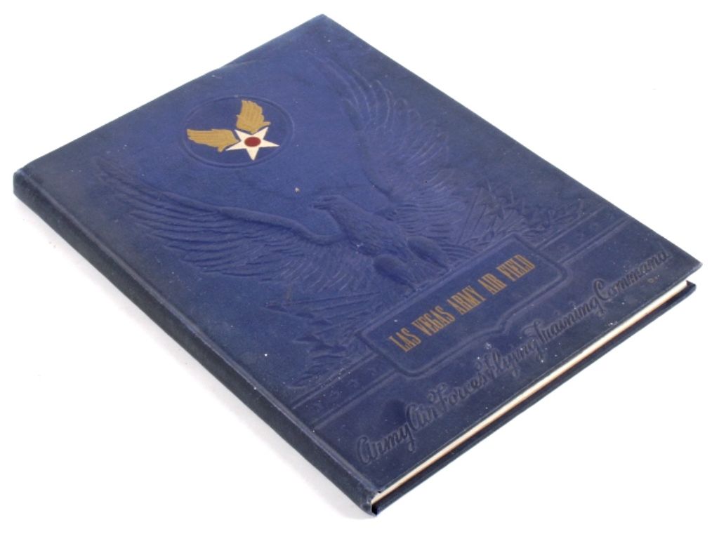 This training book is to commemorate those that served at the air field in the early to mid 40's. This book was owned but staff Sergeant Joseph H. Bostick. SSG Bostick was part of the 596th Flexible Gunnery TrainingSquadron. This book also includes certificates of Bosticks also including an American flag and a Picture of the air field. Measures 12.25"9.25".