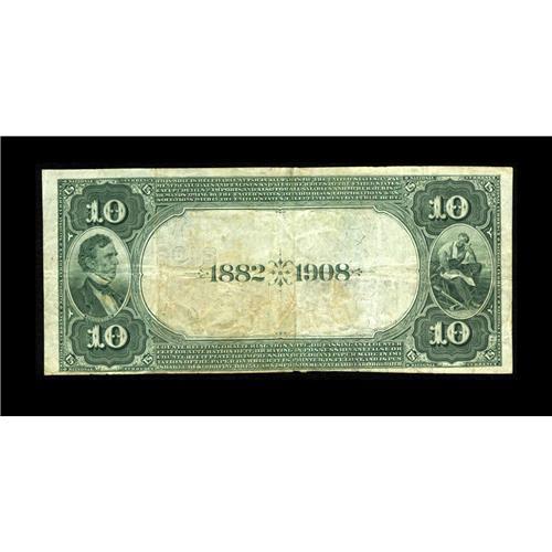 <B>Las Vegas, NM</B></I> - $10 1882 Date Back Fr. 545 <B>The First NB</B></I> Ch. # (W)2436<BR>This is one of fewer than ten reported Territorial examples from this bank, only two of which are Date Backs. This piece is by far the finer of that pair, grading a pleasing <B>Very Fine</B></I> with light blue signatures. With Territorials in short supply and high demand, expect this New Mexico rarity to reach or exceed...<BR><BR><b>Shipping:</b> Coin/Currency (<a target="_blank" href="http://www.heritageauctions.com/common/shipping.php">view shipping information</a>)