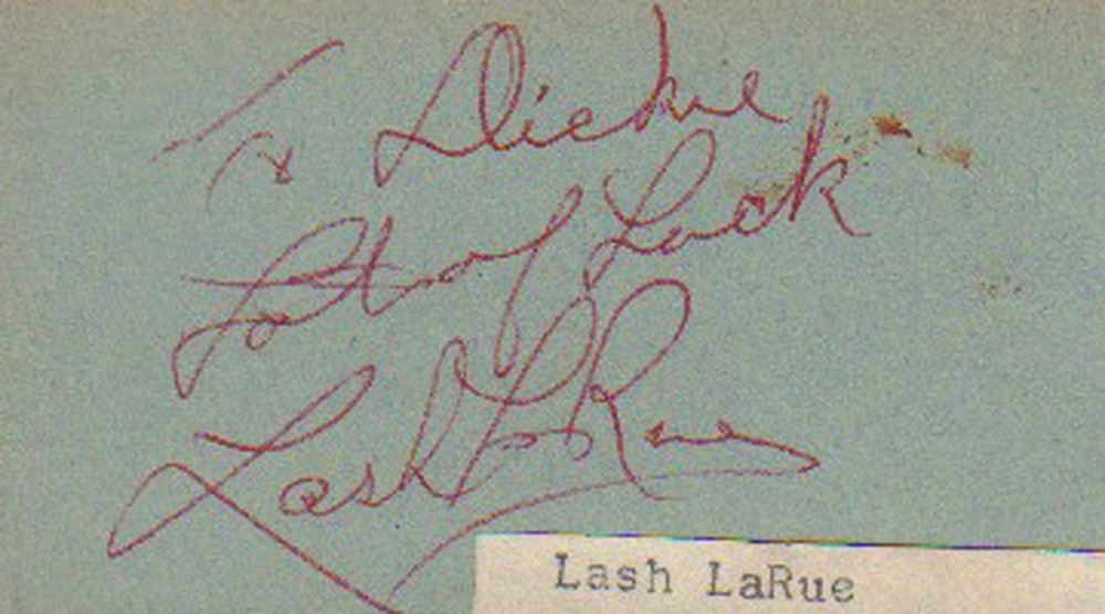 Two inch by four inch rare Ontra Cafeteria parking stub signed by Lash LaRue. The Ontra Cafeteria was one of the hot spots of Beverly Hills in the 1950s. All items come with a certificate of authenticity good for the life of the piece.