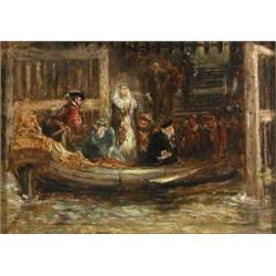 Laslett John Pott (1837-1898) oil on canvas, Lady Jane Grey arriving at the Tower, signed, 10 x 1...