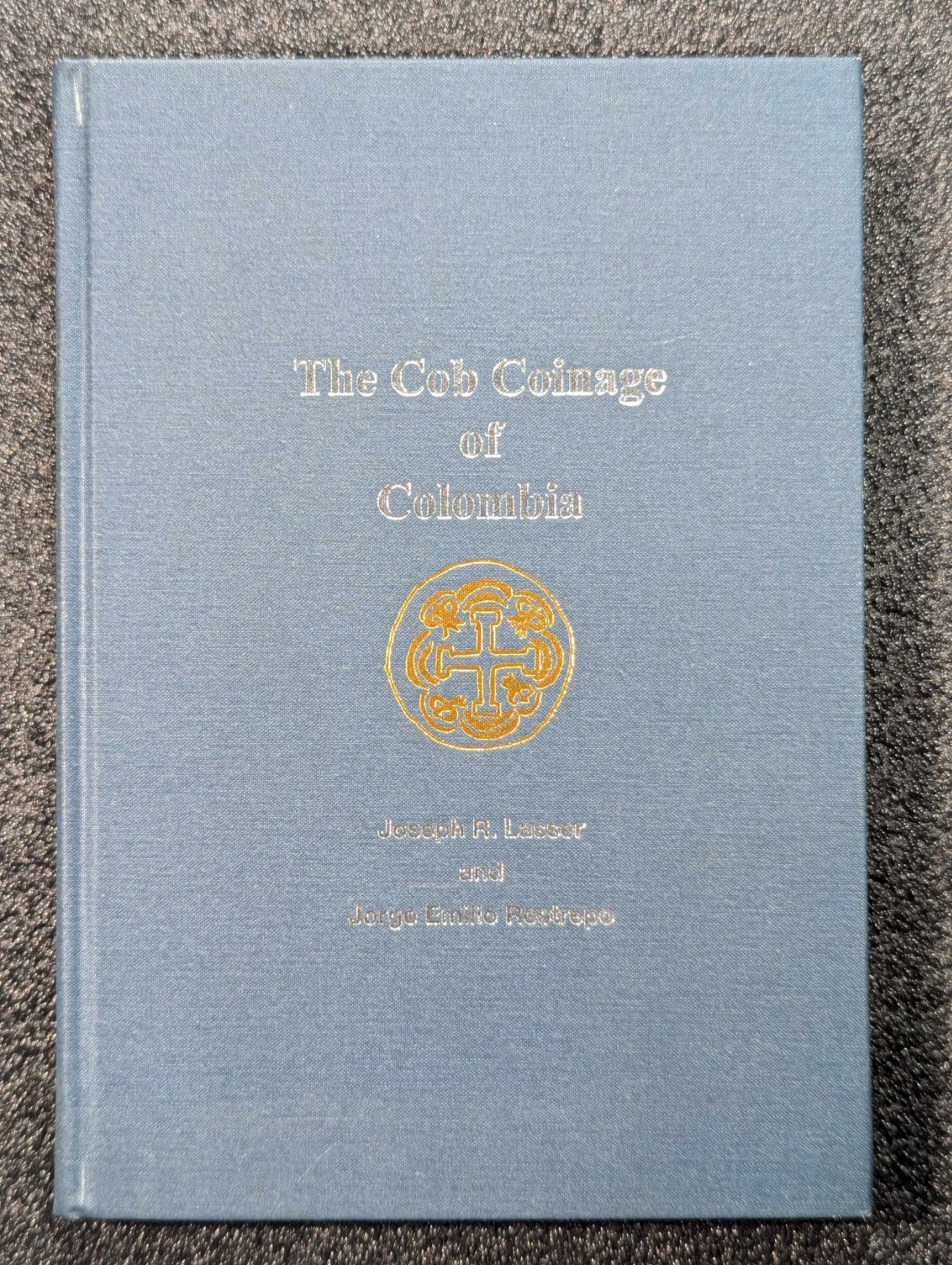 Lasser, Joseph R. & Jorge Emilio Restrepo. THE COB COINAGE OF COLOMBIA 1622-1756. Pertinax Press, New York. 2000. 4to. xvii, 150, (8) pages. Original blue cloth, lettered in silver, gilt center device. Inscribed by the author to Alan Craig. Map. Tables. Charts. Bibliography. b&w coin and coin detail photos throughout. English text translated and edited from Spanish by William L. Bischoff. The Alan Craig Library. The David Baker Library. Fine. This book is a study of the gold and silver cobs of all types and denominations minted and produced in the areas now known as Colombia. The book starts with a history of Nuevo Reino de Grenada and its silver and gold cob production. The second part of the book is a catalog of the coins as listed according to rulers and according to denomination, mint and assayer. All coin types have an obverse and reverse coin photo, type designation, assayer information, notes on rarity and other descriptive information. Lot weight: 1 lbs 5oz. Subject(s): Colombian Coinage.
