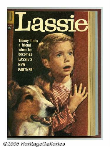 <B>Lassie #1-48 Bound Volume Group (Dell, 1950-60) Condition: VG.</B></I> These four bound volumes contain ten years worth of adventures starring the Queen of Collies, <B>Lassie</B></I>. Originally a film star for MGM pictures, Lassie added television to her resume in 1954 with a long-running series still fondly remembered. Dell's excellent comic book series is just as well remembered by comic book fans of the era, and rightly so. Beginning with the lushly painted covers, to the detailed art (by Matt Baker and others), and exciting, briskly paced stories, this one is a winner all the way. All comics are Western Publishing file copies that were bound and trimmed into hardcover books for office use. Most issues still look new, with glossy covers and supple paper. Overstreet 2005 VG 4.0 value for group = $534. <I>From the Random House Archives.</B></I>
