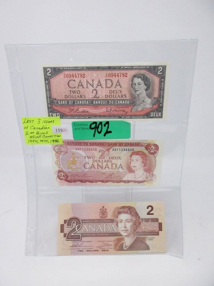 1954, 1974 and 1986. No ink or pencil markings on either side of the bills.