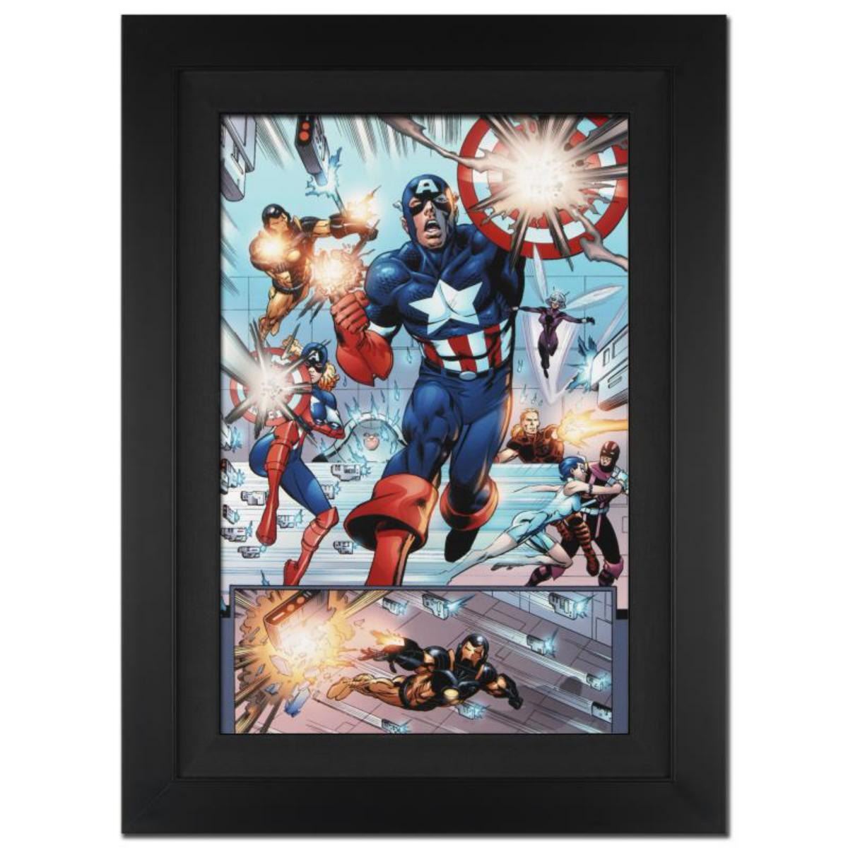 A piece of comic book history, this limited edition, from original art by Patrick Olliffe, depicts the classic character Captain America. Best known for his work on the Spider-Man and Spider-Girl franchises, Patrick Olliffe is also a published author and illustrator. "Last Hero Standing #1" is an extremely limited edition numbered giclee on canvas by Patrick Olliffe presented by Marvel Comics, hand signed by the Great Stan Lee (1922-2018) and numbered out of only 10! This piece comes custom framed and ready to hang. Includes Certificate of Authenticity! Measure approx. 25" x 34" (with frame), 18" x 27" (image). Reference #: 203608.