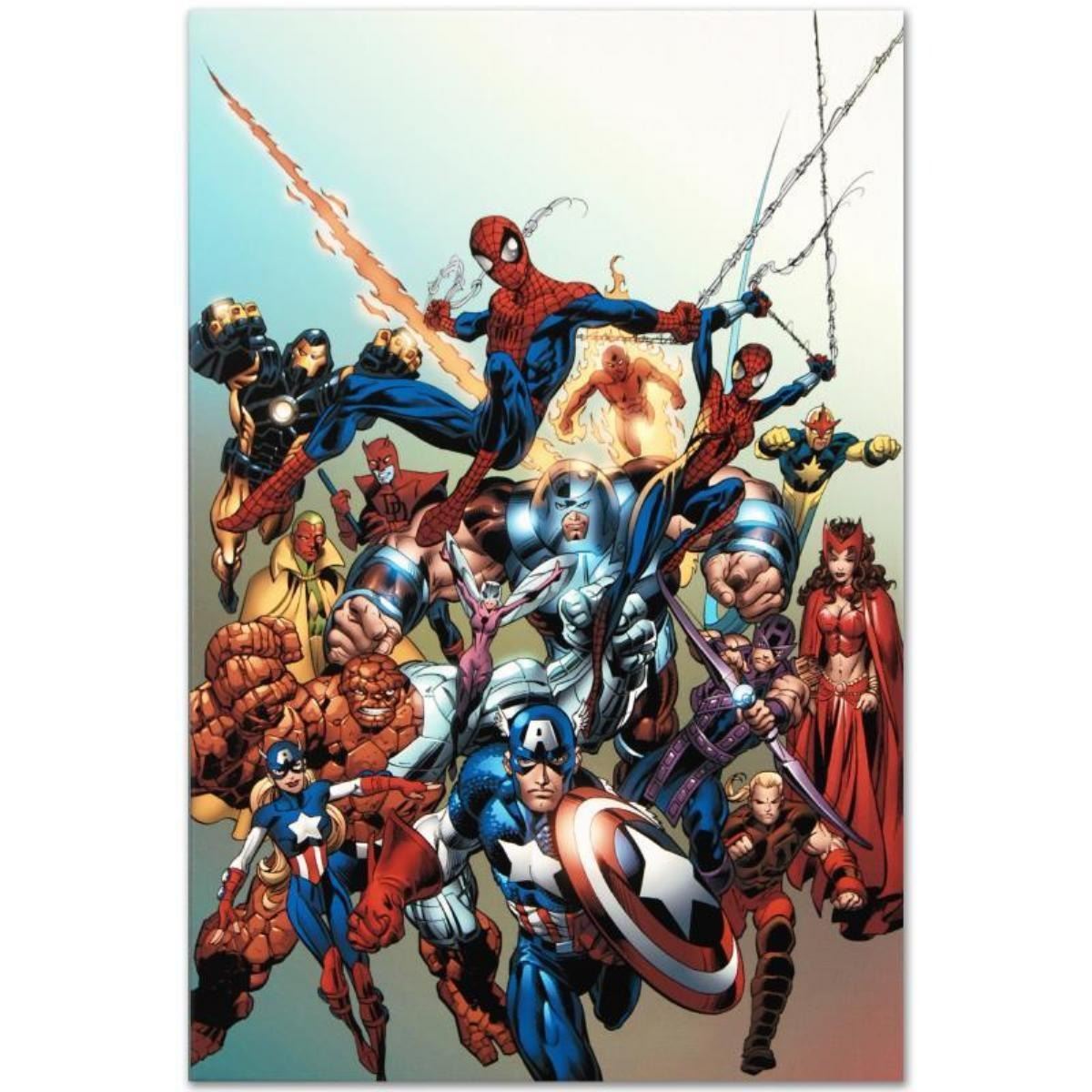 A piece of comic book history, this limited edition, from original art by Mark Bagley, depicts classic characters from the Marvel Universe. Mark Bagley got his start by winning Marvel's Try-Out contest, for which he was awarded penciling jobs. Soon, Bagley was drawing regularly for the renowned Spider-Man franchise. "Last Hero Standing #1" is a limited edition giclee on canvas by Mark Bagley presented by Marvel Comics! This piece comes gallery wrapped. Includes Certificate of Authenticity! Measures approx. 18" x 27" (image); 1.5" (depth). This item requires special handling and may have a longer than usual turnaround.
