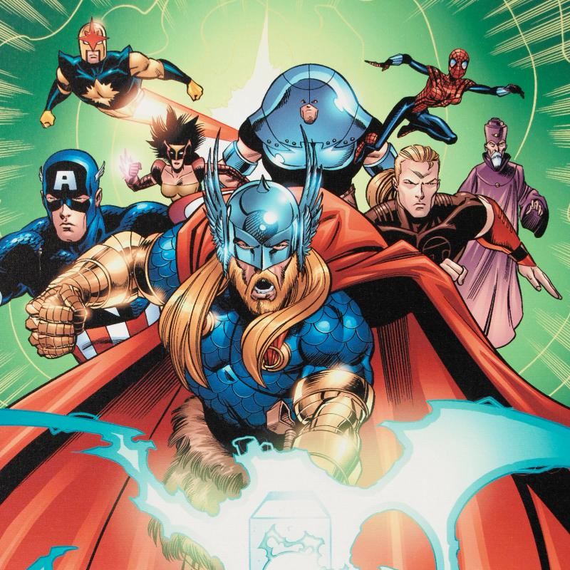 A piece of comic book history, this limited edition, from original art by Patrick Olliffe, depicts classic characters including Thor and Captain America. Best known for his work on the Spider-Man and Spider-Girl franchises, Patrick Olliffe is also a published author and illustrator. "Last Hero Standing #5" is a limited edition giclee on canvas by Patrick Olliffe presented by Marvel Comics! This piece comes gallery wrapped. Includes Certificate of Authenticity! Measures approx. 18" x 27" (image). Please allow 5 additional business for items that include canvas stretch or framing.