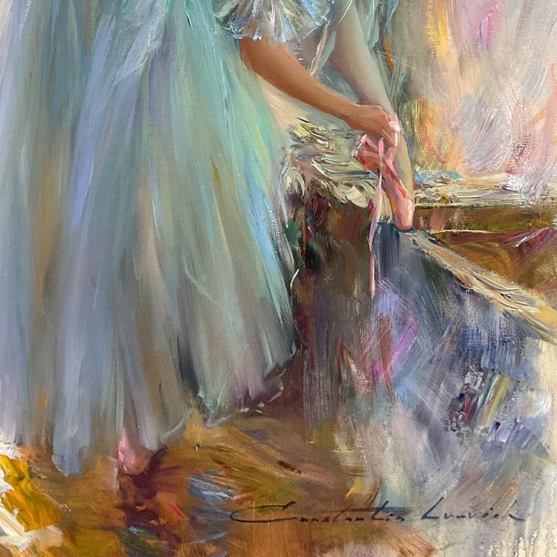 "Last Preparations" is a hand embellished limited edition giclee on canvas by Constantin Lvovich, numbered 11/100 inverso and hand signed by the artist. This piece comes framed. Includes Letter of Authenticity. Measures approx. 38.5" x 30.5" (frame), 27" x 19" (image). There is wear on the frame.