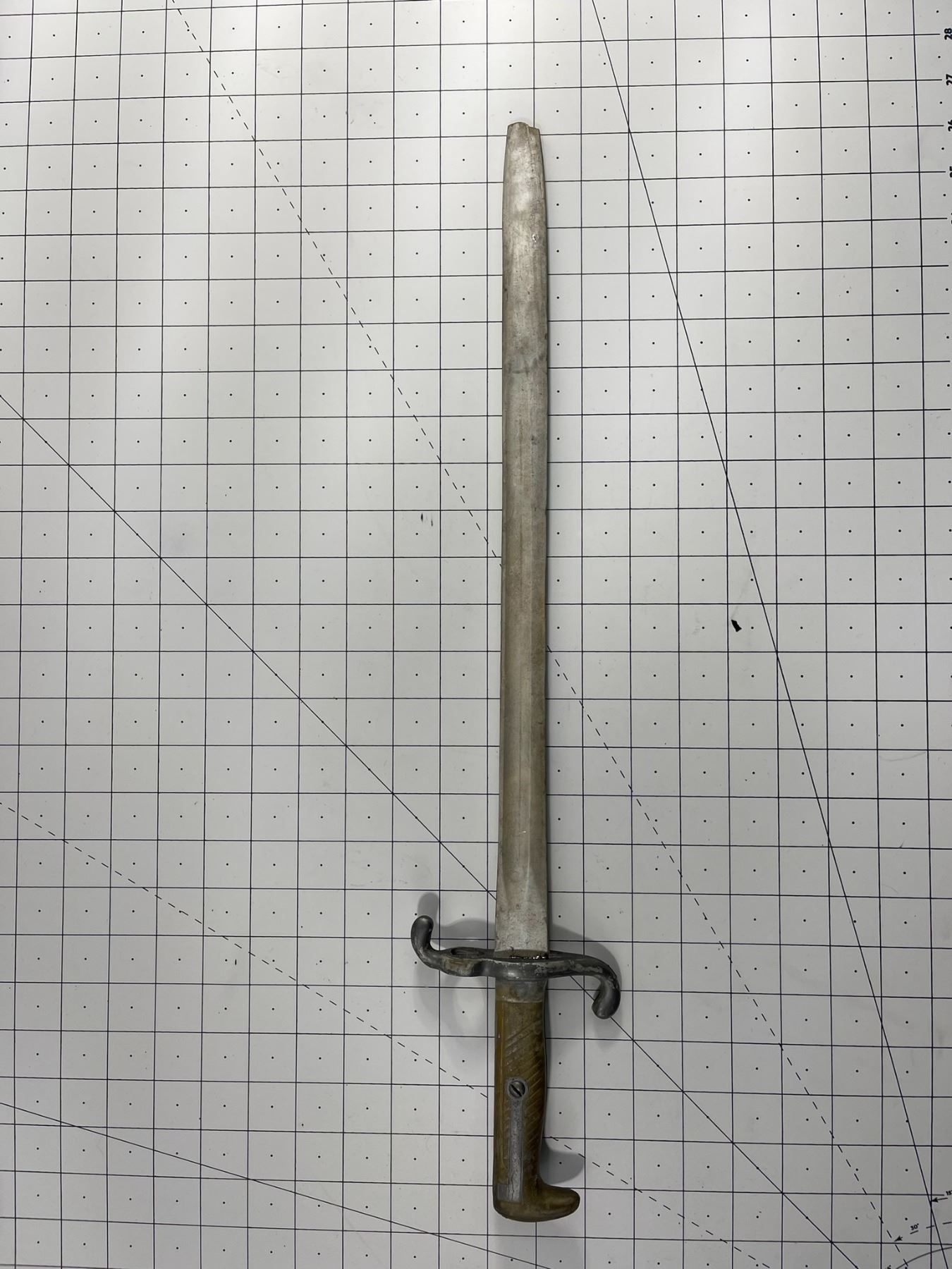 This is a stunt bayonet seen in the film on the Japanese Imperial Army rifles during the battle. Note that the tip has been broken off.
