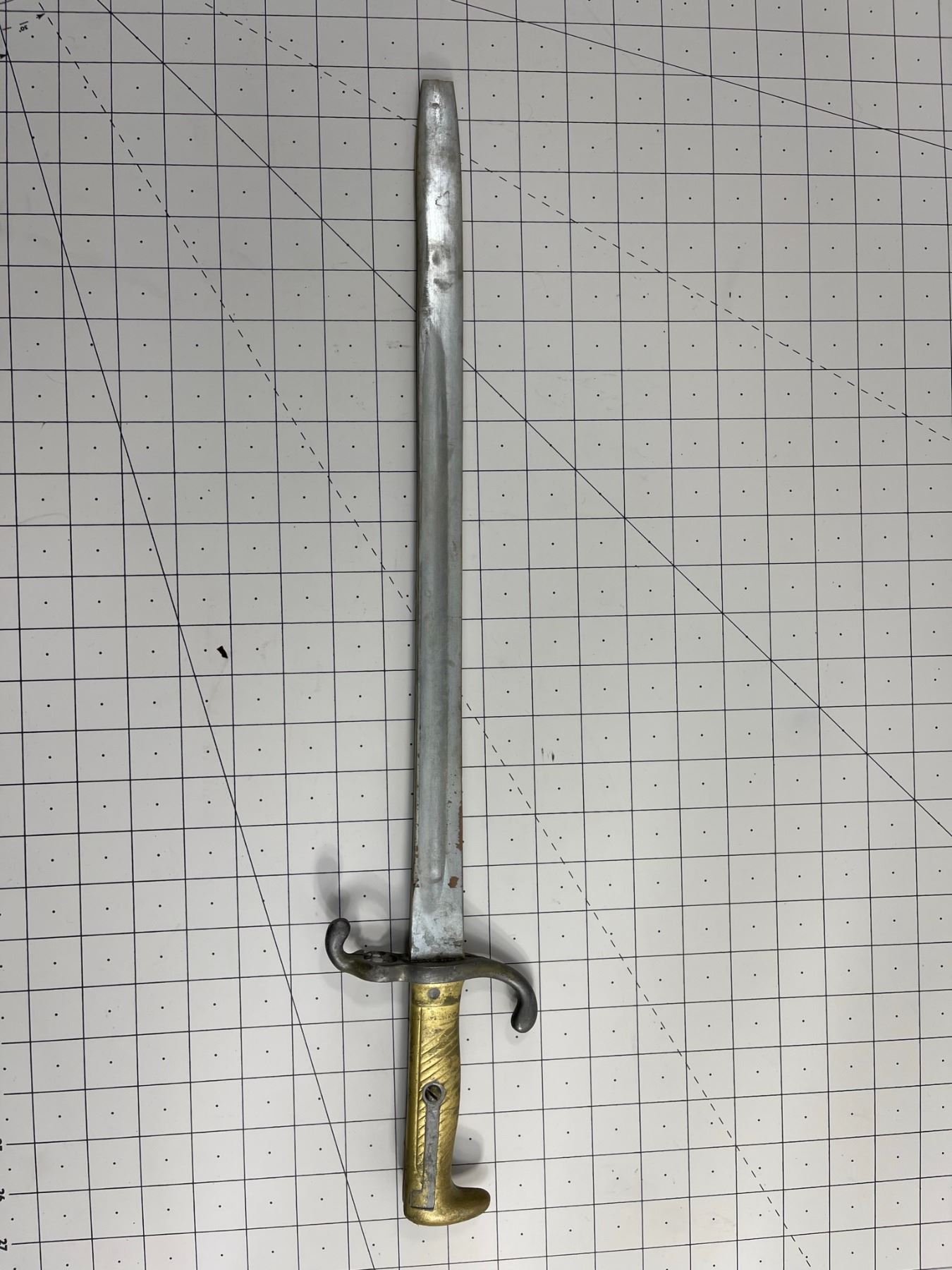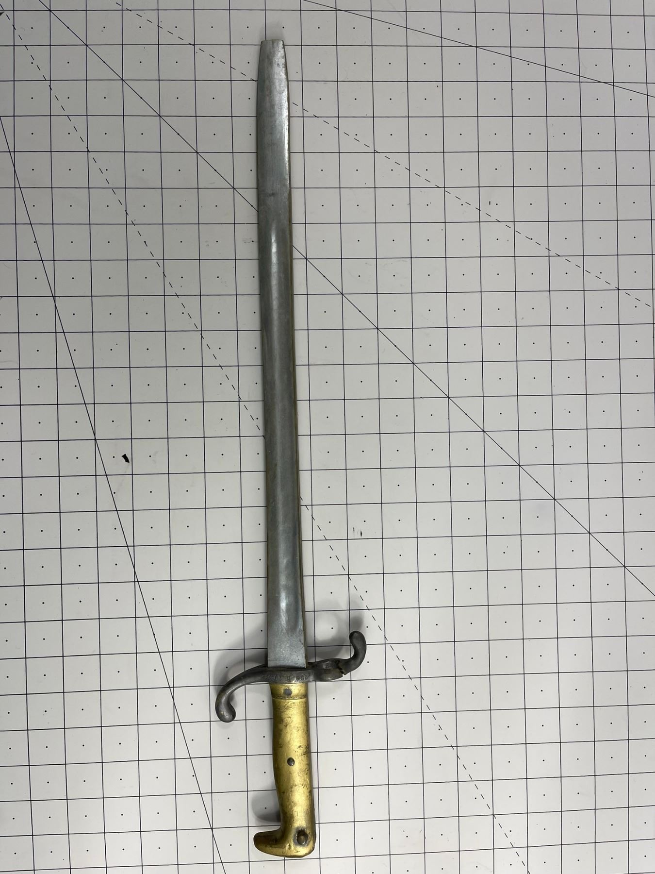 This is a stunt bayonet seen in the film on the Japanese Imperial Army rifles during the battle. Note that the tip has been broken off.