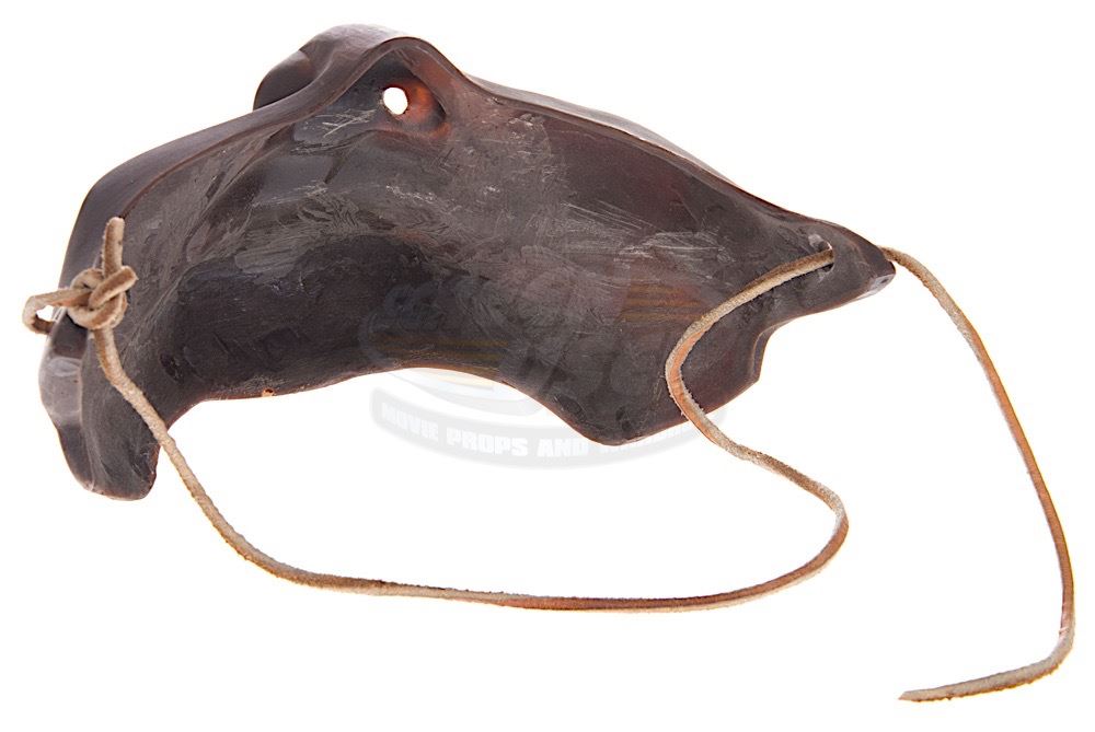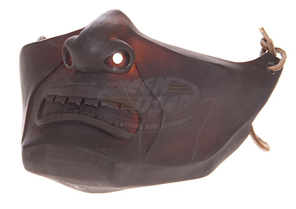 (Warner Bros. Pictures, 2003) This unfinished samurai mask was custom-made by the production for use by the actor that played "Hirotaro", Katsumoto's brother-in-law and Taka's husband. The mask features a terrorizing face and is constructed of resin with a leather strap attached. Measures approximately 8" x 4.5" x 6".