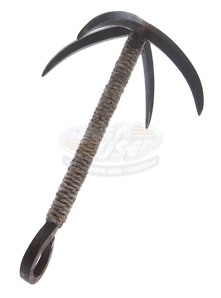 (Warner Bros. Pictures, 2003) This Ninja grappling hook and cross bow arrow were custom-made by the production for use by various actors during filming of the attack on Katsumoto's encampment. The grappling hook is made of hard rubber and measures 23" in length. The arrow is made of rubber and measures 6.25" in length.