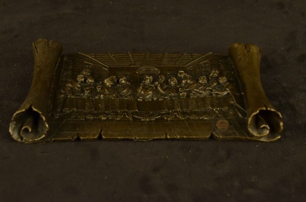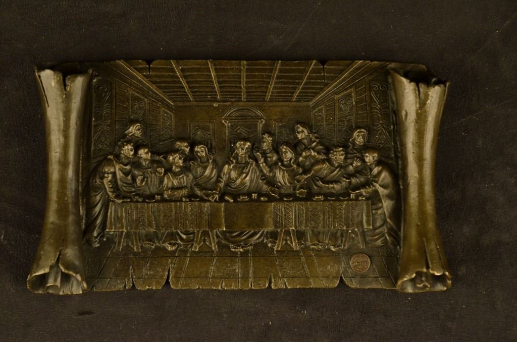 Stunning Bas-Relief Of Da Vinci'S Masterpiece, Ornate Hand Made Bronze With A Brown Patina, Wonderful Wall Decor Item For Any Christian And Signed By Artist Milo. Bronze Dimensions: Height 5 X Width 8 inches. Weight: 5 Lbs.