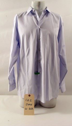 Judge screen worn, hero, white with thin blue stripes 'Calvin Klein' dress shirt. (size 17 1/2 - 32/33) Includes wardrobe tag!