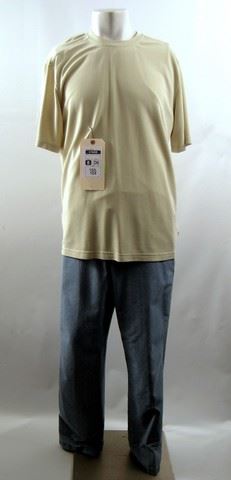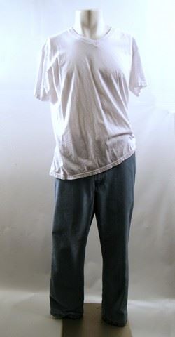 Sam (Kevin Kline) screen worn, hero, beige short sleeve crew neck 'Tommy Bahama' shirt, (size L) white short sleeve v-neck 'Nordstrom' t-shirt, (size L) and stretch denim 'David Taylor' pants. (size 36 x 32) Includes wardrobe tag!