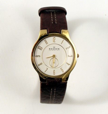 Sam (Kevin Kline) screen worn, white faced 'Skagen' wristwatch with leather band.