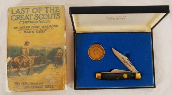 Last of the Great Scouts "Buffalo Bill" By Helen Cody Wetmore, Sister of Buffalo Bill. With Foreword and Conclusion by Zane Grey. Copyrights 1899 and 1918. With Buffalo Bill Cody LE Commemorative Knife