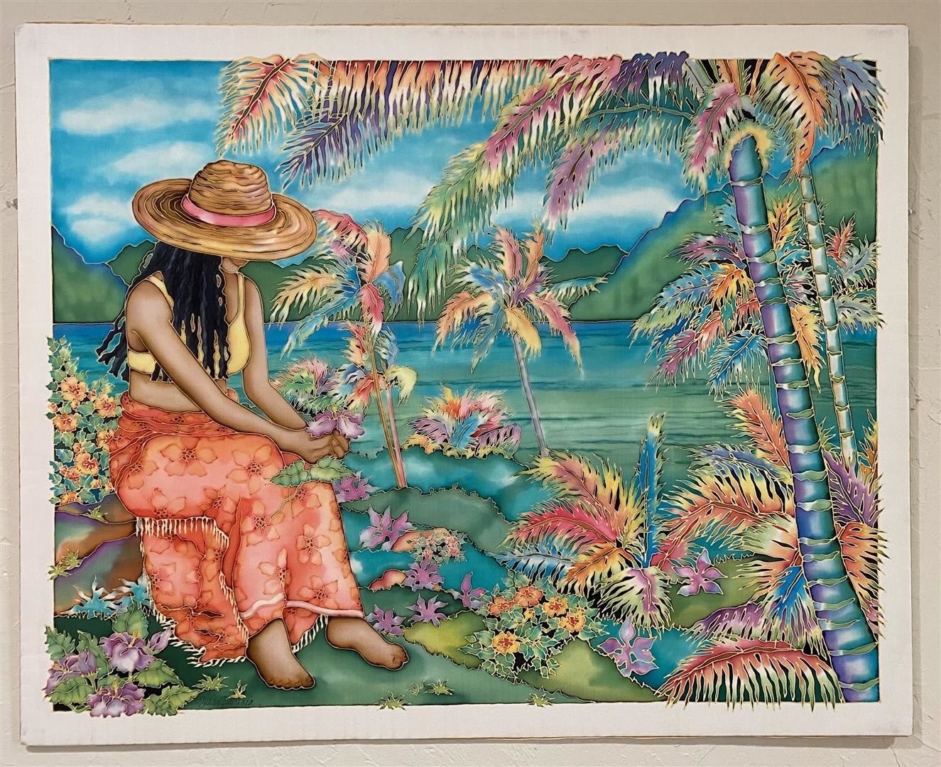 "Lasting Impression" is what Hawaii gives you, according to the Islands' own Susan Patricia. Original on silk. 37" x 29 5/8"