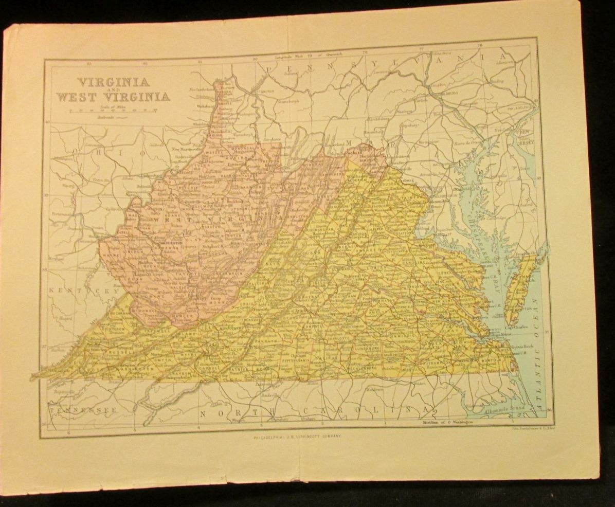 Late 1800 era Map of Railroad Map of Virginia & West Virginia, mounted & ready for framing; cancelle