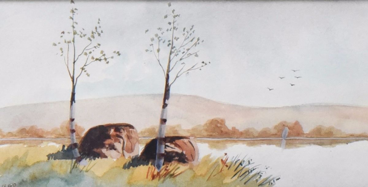 Late 1800's American Impressionist Style Watercolor Artist Signed Lower Left. True Period Frame 15"W X 10" H, Image Is 9"W X 4"H. Highly Sought After Work Of Art. Estimated more than 100 yrs old. Fine Art. Size: See Ruler Photo. (Photos Represent The Condition Of The Lot.)