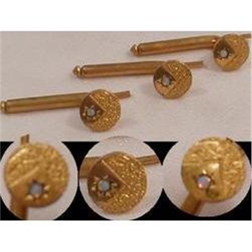 This original three piece set has genuine opal centers set in fancy etched gold filled fronts. Each is a bright gold and they are in great condition too. It is amazing that all three have stayed together and to be in such fine shape. MUCH prettier than the photos. These are NOT reproductions .
