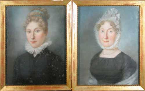 Late 18th C. English School pair of pastels, Portraits of a mother and daughter, 14 x 11 ins. £200-300