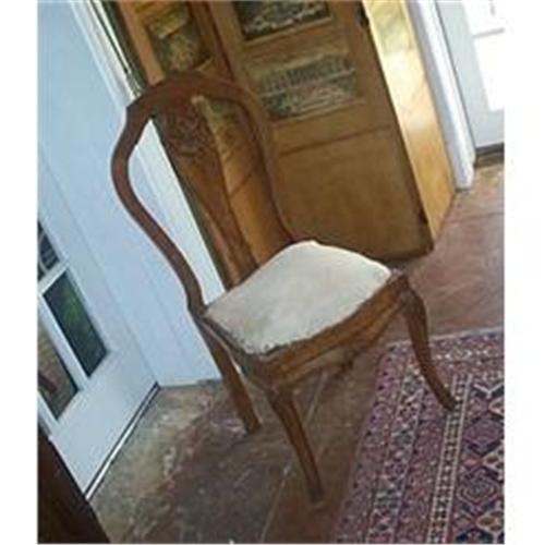 Here we have a charming side chair that has hand carved detailing on the splat, knees and feet. It is Italian most likely, continental certainly, and dates to the late 18th century to early 19th century. My pictures will show the detailing and the expected wear and tear, and the little irregularities an early hand made piece will have. I consider the chair to be in very good condition for it's age, and it is stable. The back of the chair rises 39", upholstered only in muslin with tacks.