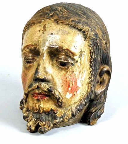 AZ,. estate listed as the Head of John the Baptist, fully polychrome with most paint remaining, 7 1/2" tall, rare in this size. Est. 2500-3500