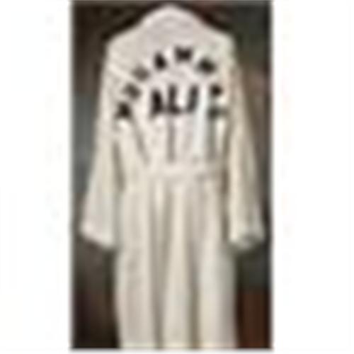 Muhammad Ali first won the Heavyweight Championship in 1964 when he shocked the world by knocking out Sonny Liston in the seventh round in Miami Beach. After having his WBC belt stripped, Ali regained it in 1974 when he defeated George Foreman in the infamous "Rumble in the Jungle". The champ won the Heavyweight title for a third and final time in 1978 when he beat Leon Spinks in their rematch in New Orleans. The robe seen here was used by Ali during training after the second Spinks fight. It is a white terrycloth calf length example with a white terrycloth sash and no hood. "Muhammad Ali" is sewn on the reverse in black letter block lettering and "World 3 Champ" appears the same way on the right breast. A white label from the manufacturer with a small "R" inside a circle is sewn on the front left breast. Under the "R" is the large word "Everlast" and under that in smaller lettering is "Made in U.S.A." The lettering on the label is very faded. There are two front waist pockets in white terrycloth and a white terrycloth hook in the collar. The robe shows tremendous use, including frayed stitching, fading and some soiling. It was likely used for training for fights against Larry Holmes in 1980 and Trevor Berbick in 1981. The robe comes with COA's from Wali Muhammad and Craig Hamilton.