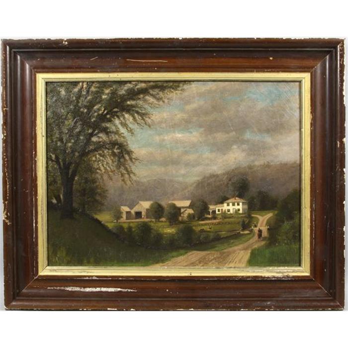 Late 19th Century American or British School, farm house along the field, 16" x 22", 22 1/4" x 28 1/4" framed, signed indistinctly LR 'E? Field 1880'.