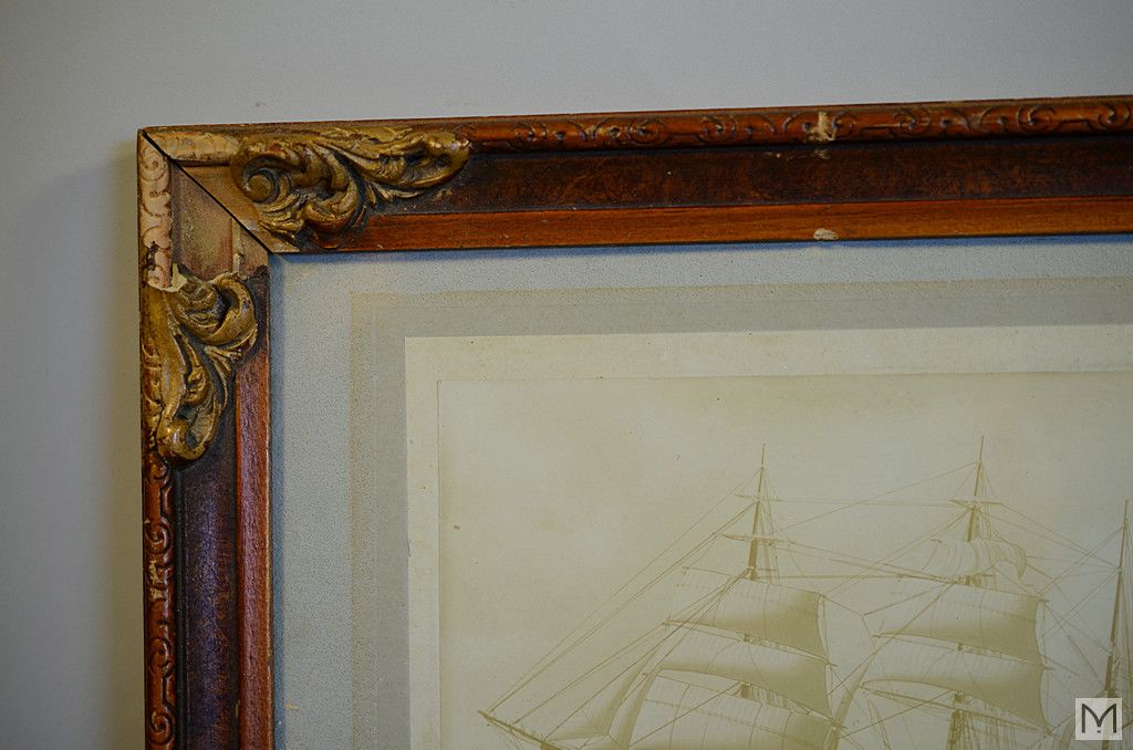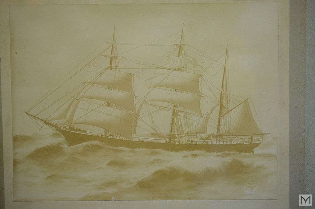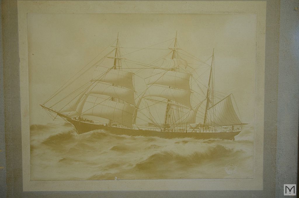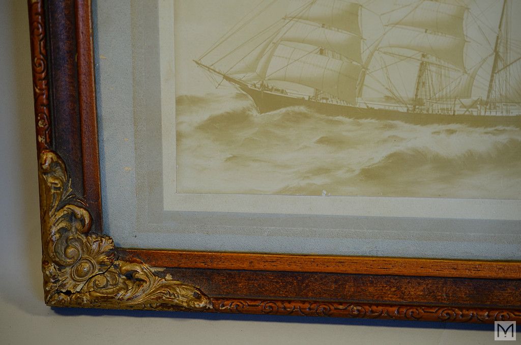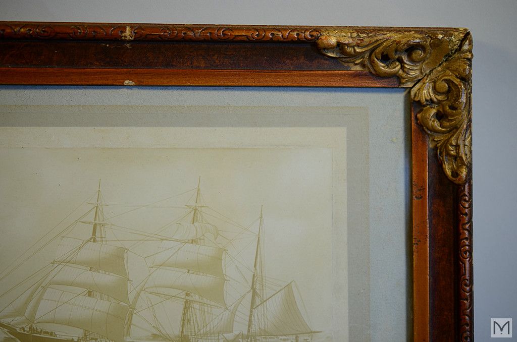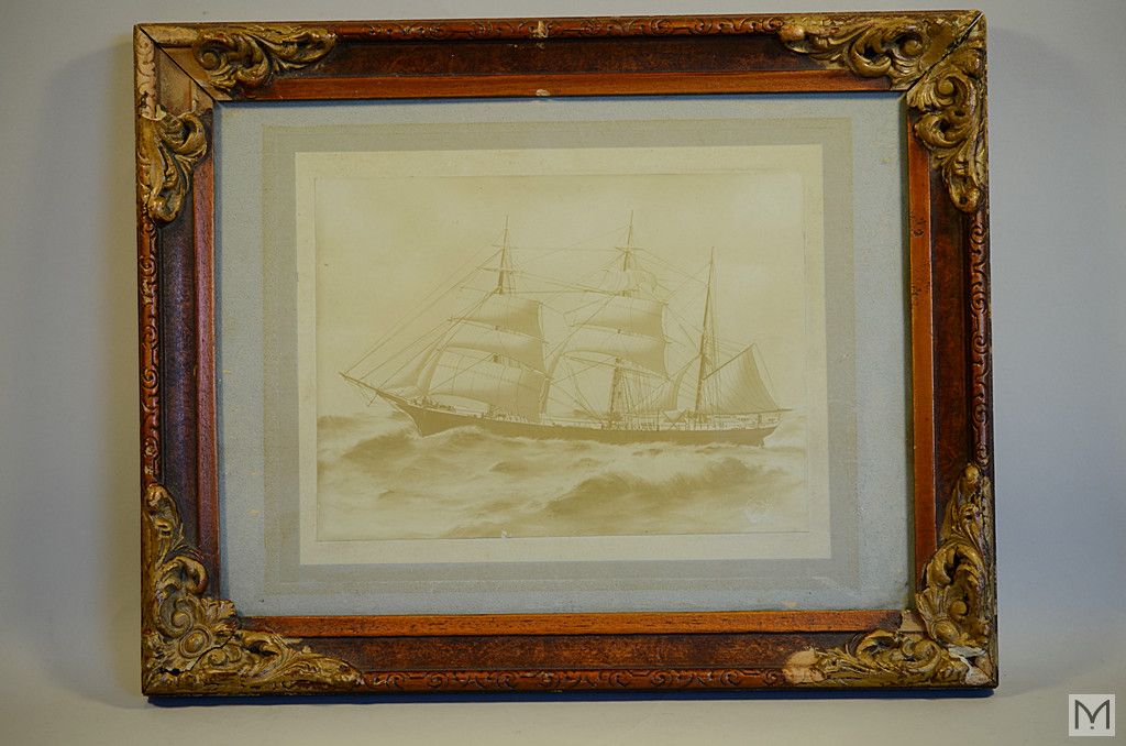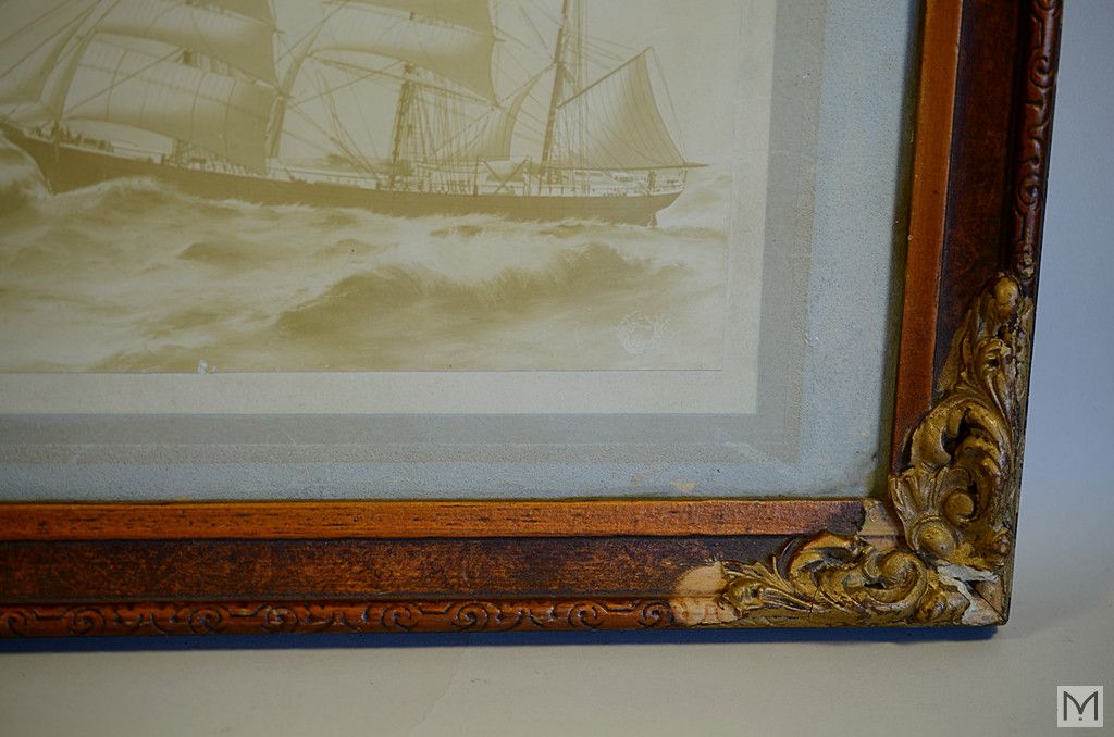 Late 19th C. Original Photograph on Paper of the Sailing Ship "ALERT" on the High Seas - Original Frame? - Behind Glass.