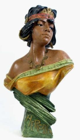 Late 19th C. chalkware bust of Herodia typical of what would be found in the early cigar stores. Bust is in very good original condition and measures 20 1/2" tall. typical of what would be found in the early cigar stores. Bust is in very good original condition and measures 20 1/2" tall.