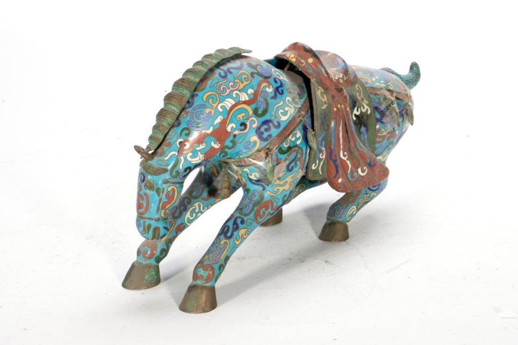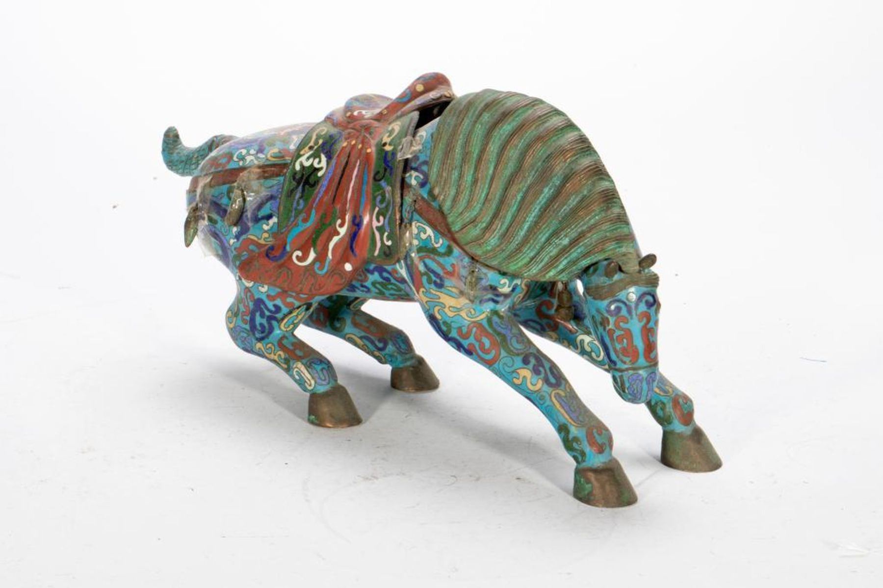 Tang style bowing figure. 10in. h. 16in. l Condition; good condition.