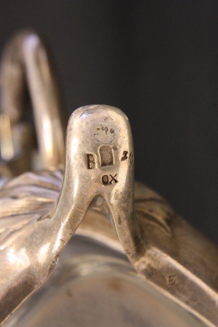 Hallmarked on foot, original liner, small flakes on edges. Approx. 17.5" W x 7" D x 7" H. Please read our terms of sale.