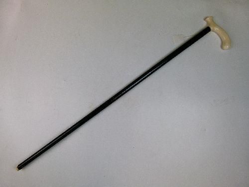Late 19th/early 20th Century ivory handled ebonised walking stick, 81cm long