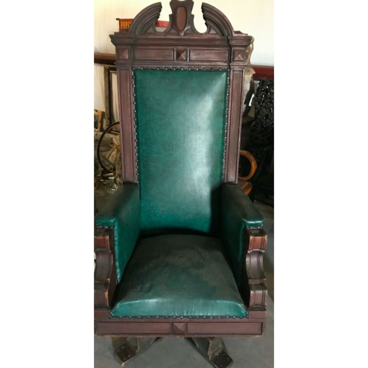 Late 19thc Eastlake judge's swivel chair.Heavyweight originally mounted to the floor, recovered with modern upholstery.Measures about 48" H, 28" D & 24" W. ***** Will require special pick up & delivery arrangements due to size & weight.