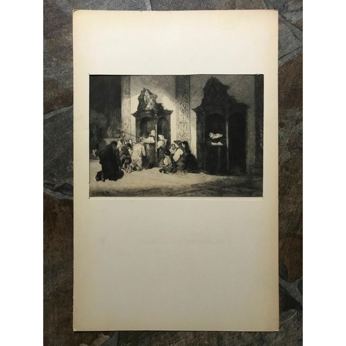 Original late 19th Century ( 1892 ) etching by C. Courtry" The Kind Confessor" also known as "The Good Pastor" from the original painting by Edourad Zamacois y Zabala ( Madrid Spain, 1841 - 1871 ). 7" X 9 3/4" displayedwithin portfolio.