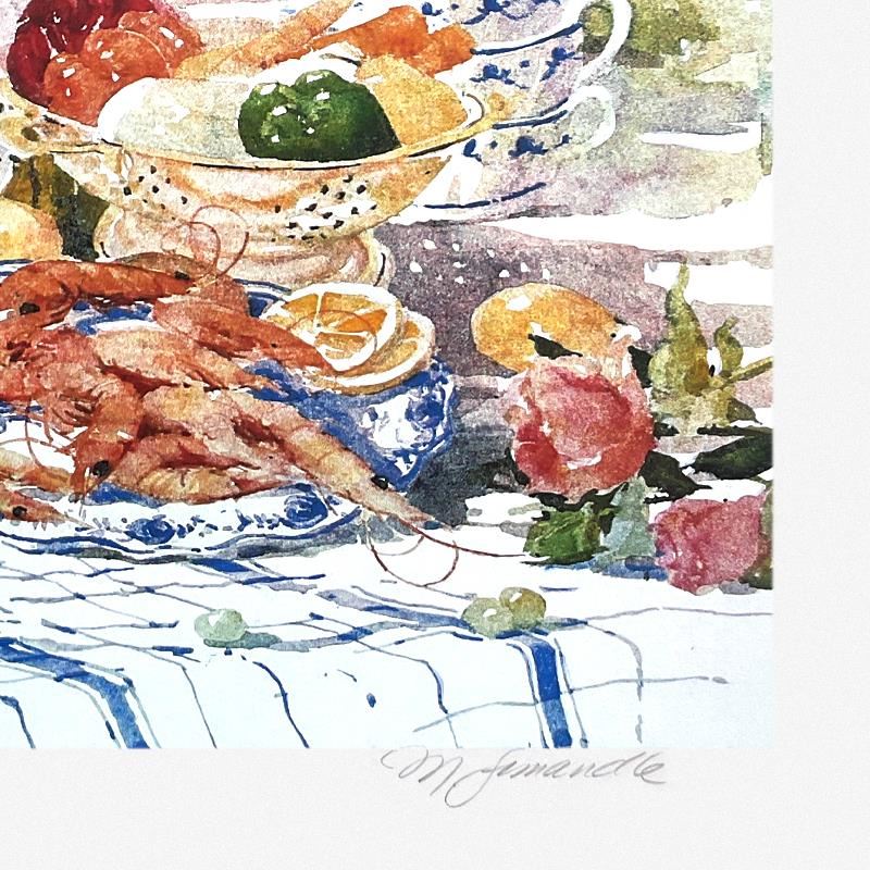 "Late Brunch" is a limited edition printers proof on paper by Marilyn Simandle numbered and hand signed by the artist. Includes Letter of Authenticity. Measures approx. 18.5" x 24" (border) 14" x 20" (image).