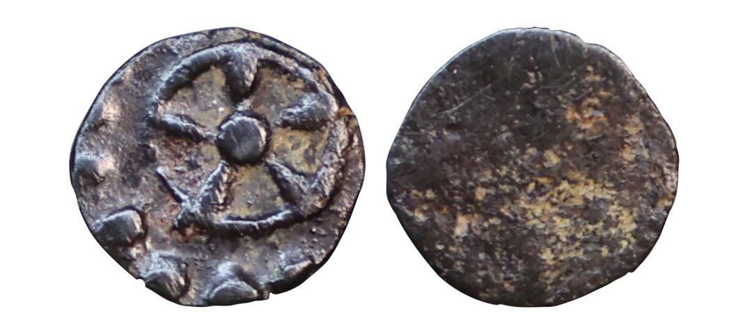 Late Mauryan, (3rd-2nd Century BC), PMC, Silver Mashaka, 0.20 gms, Obv: chakra symbol, Rev: blank, very fine, very scarce.
