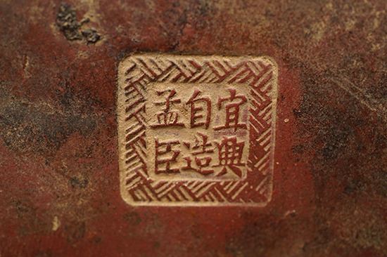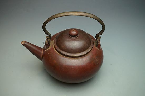 Late Ming Dynasty, A Large and Old Yixing Teapot with Bronze Loop-Handled; "Yi Xing Meng Chen Zi Zao