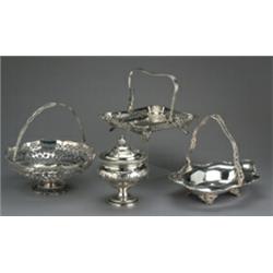 Late Victorian rectangular cake basket with pierced and embossed foliate decoration with reeded s...