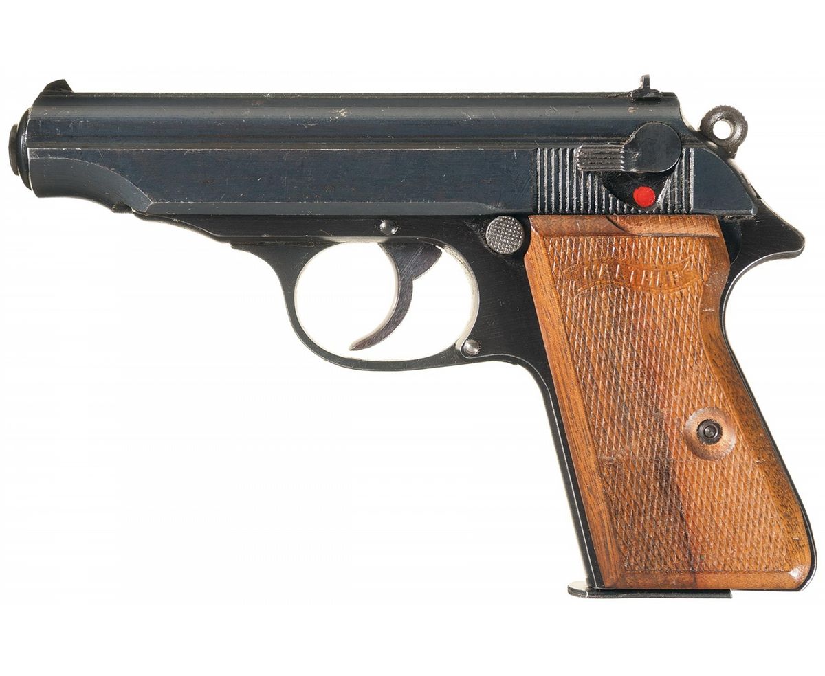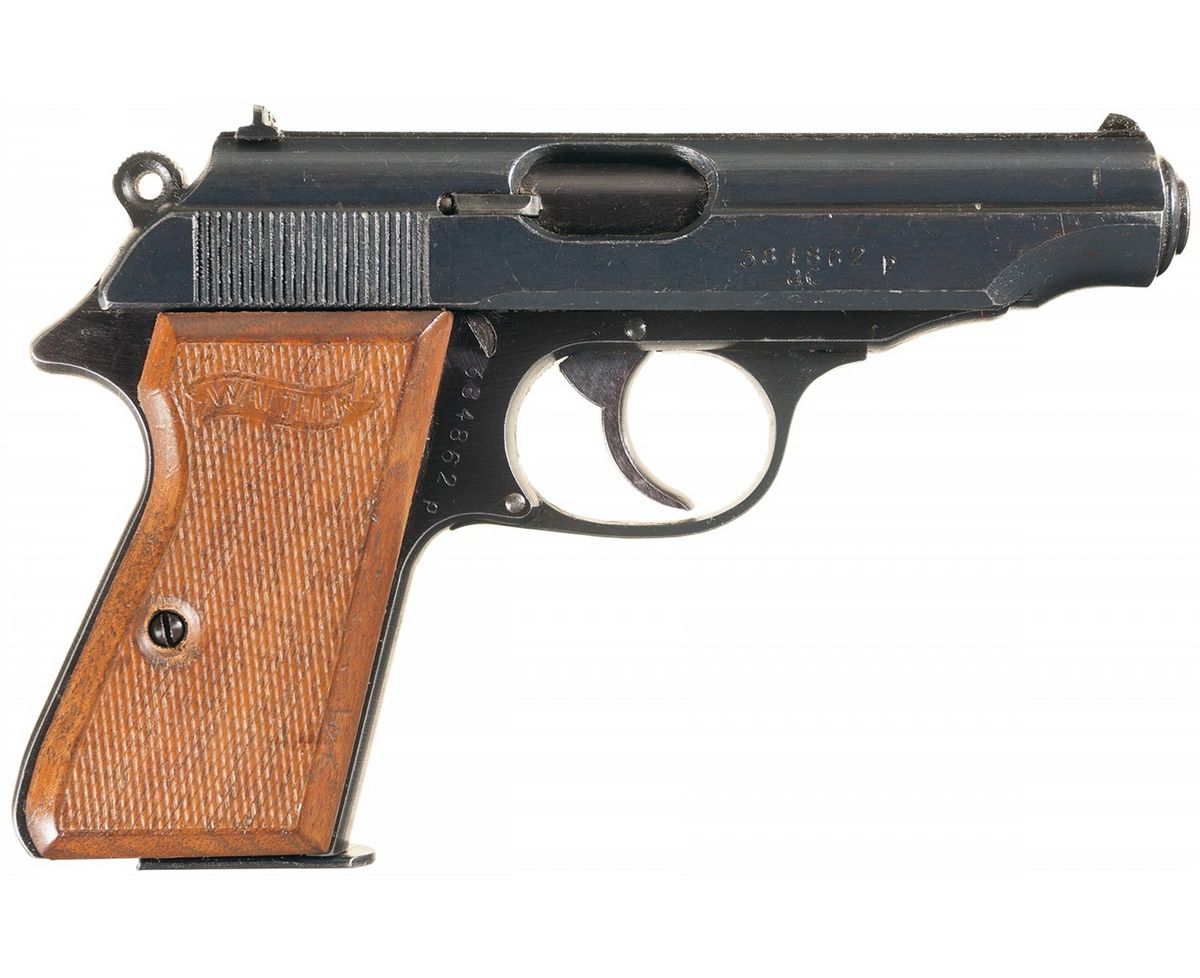 Fixed sights with "ac" code on the right side of the slide, and matching numbers on the slide and frame. Equipped with a ring hammer, 60 degree safety, and checkered hardwood Walther banner grips.