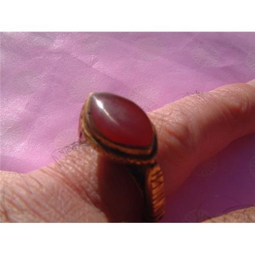 15th.-16th. century Islamic gold ring with oval carnelian inset stone decoration. The gold has a high karat gold content and the ring is size 9 and has incised linear and circle decorations. Estimated value: $7000. Weight: 11.3 gm.