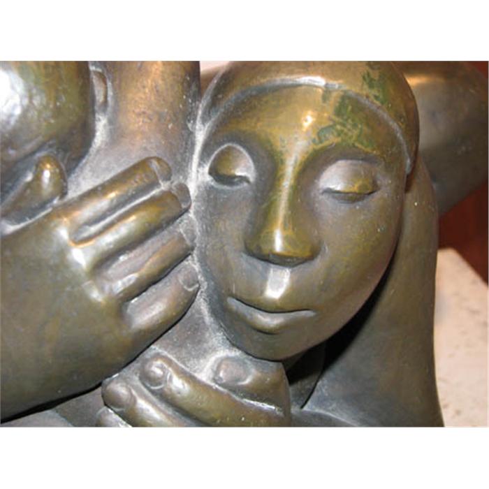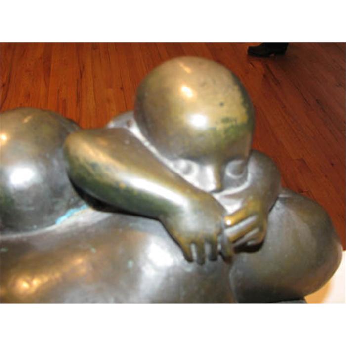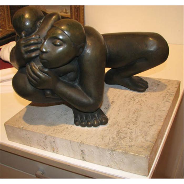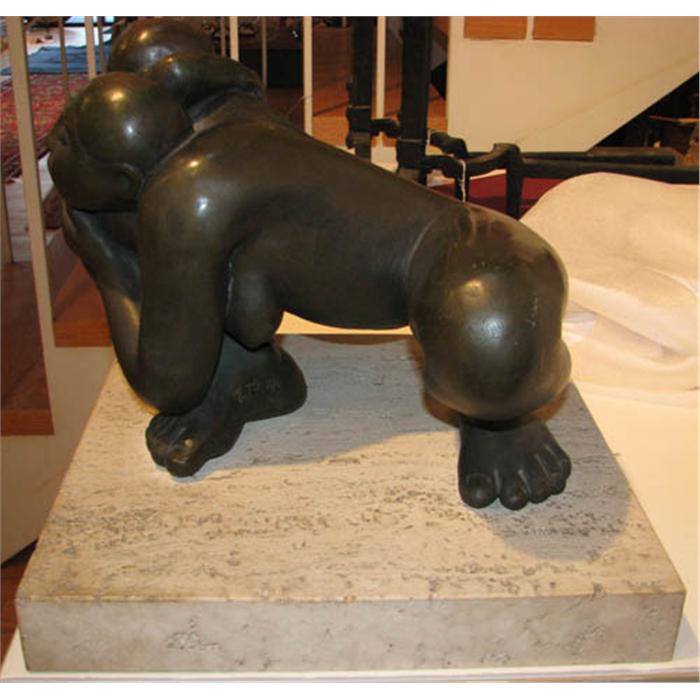 Medium: cast bronze with brown patina on marble base and custom pedestal
