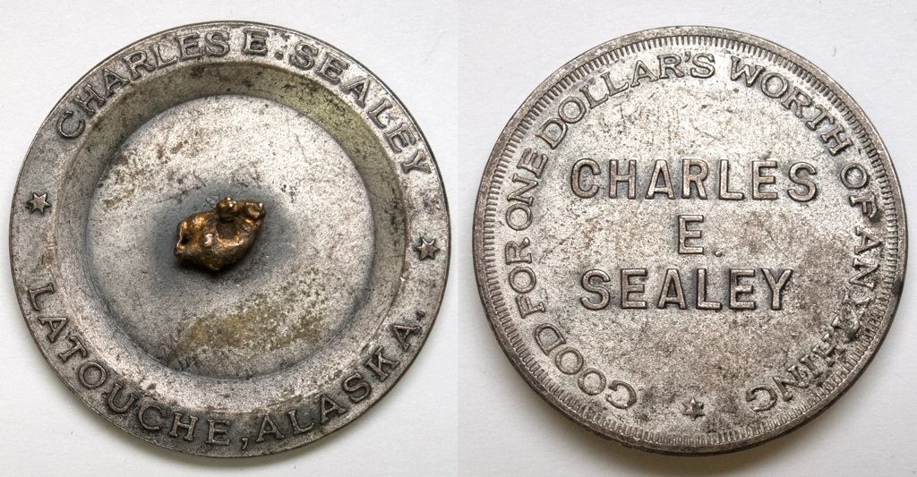 The silver color of the letters on the reverse have been rubbed off through time. (Note* nugget has been gold plated)