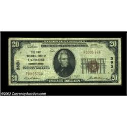Latrobe, PA - $20 1929 Ty. 1 The First NB Ch. # 3831An evenly circulated Fine+ example. Important n
